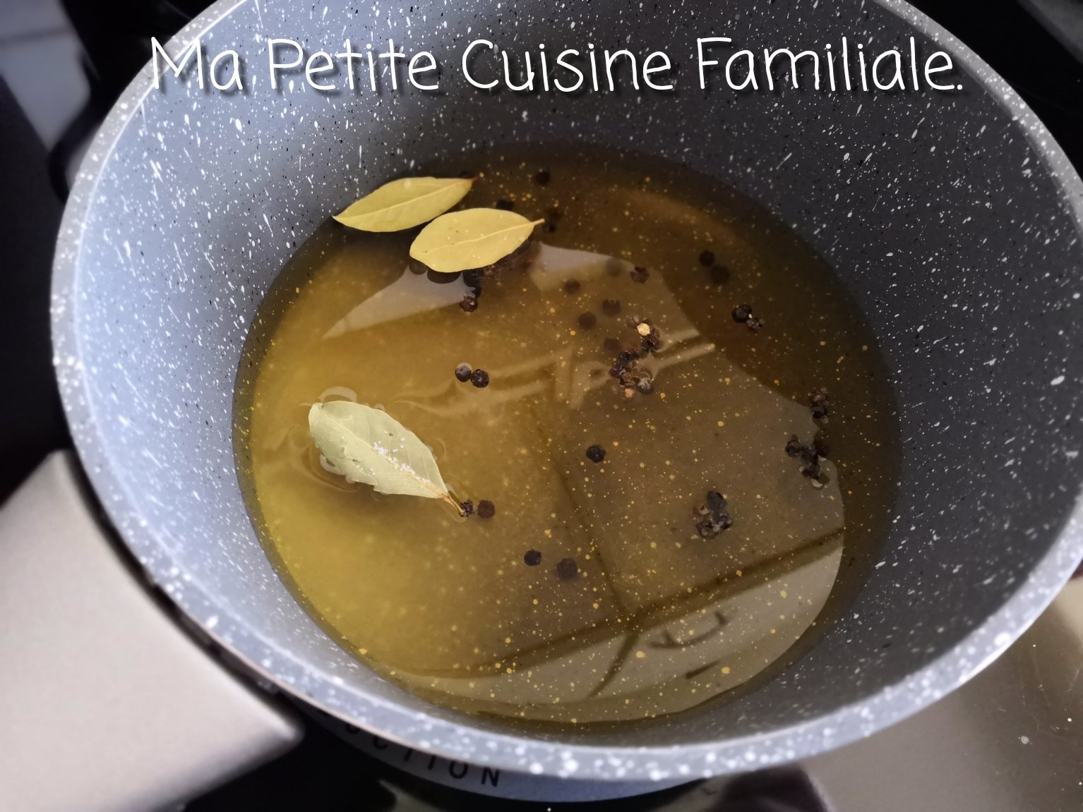 1. Versez le vinaigre dans une petite casserole, avec le poivre, le laurier, le sel et le sucre. Portez à ébullition.