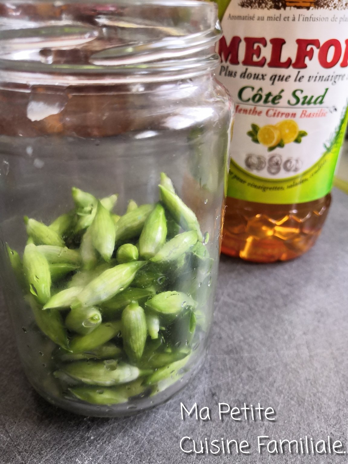 J’ai tenu à faire cette recette car elle m’intriguait. Manger des boutons de fleurs comme on mange des cornichons. Et pourquoi pas.