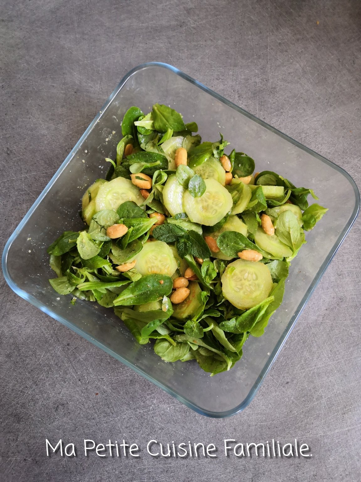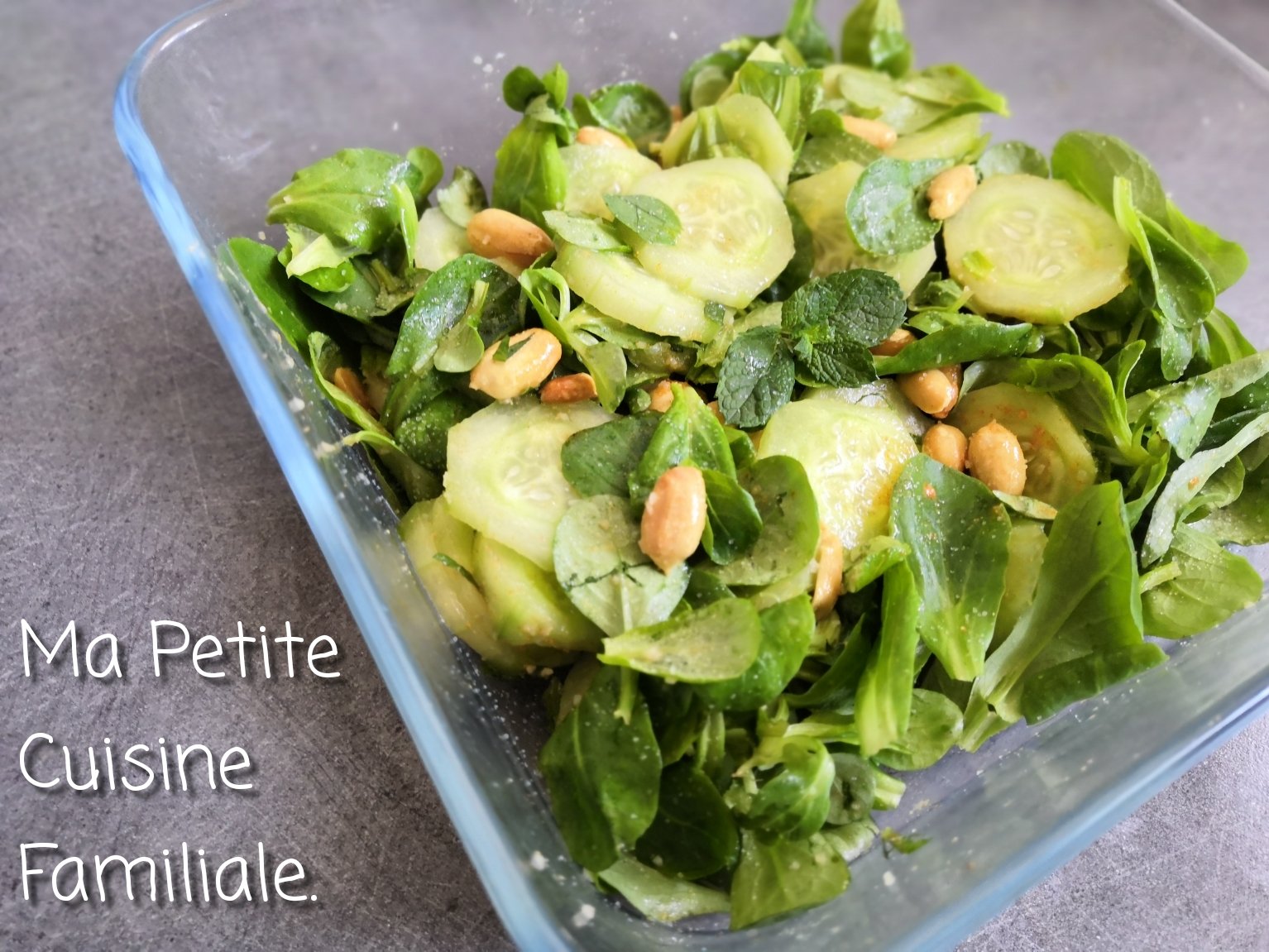 Une nouvelle recette de salade arrive sur le blog, une recette composée de concombre, de mâche et de cacahuètes.