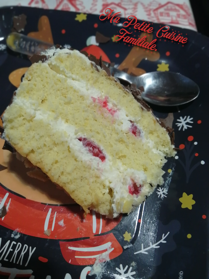 Je me suis rendue compte en découpant le gâteau que j’ai été un peu radine sur la crème. N’hésitez pas à être gourmands.