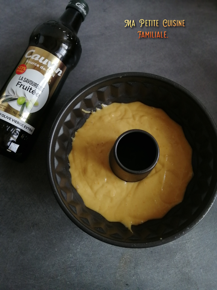 Avec ma fille, nous avons choisi d’en faire un à l’orange. Et j’y ai rajouté ma touche perso… L’huile d’olive qui se marie très bien dans les gâteaux aux agrumes, sans laisser d’arrière goût désagréable..