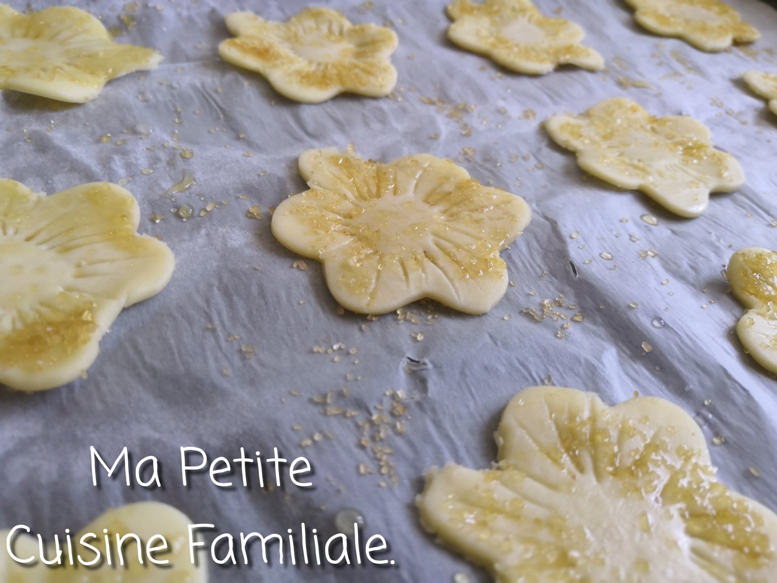 J’avais une pâte brisée toute prête à écouler alors je l’ai utilisé pour ces biscuits, mais vous pouvez bien entendu faire votre pâte vous-même. Une pâte sablée sera parfaite.