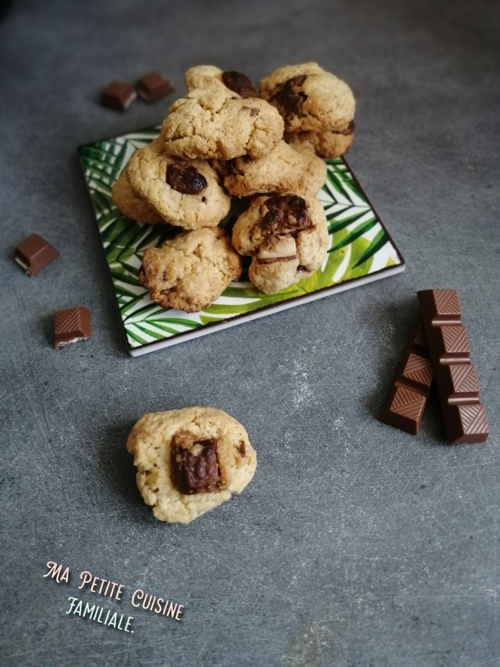 Et si on y rajoutait un peu plus de gourmandise en y intégrant des petits morceaux de barre de chocolat fourrée au lait ? Ces barres remplacent bien les pépites de chocolat qu’on peut mettre habituellement dans les cakes ou les biscuits.