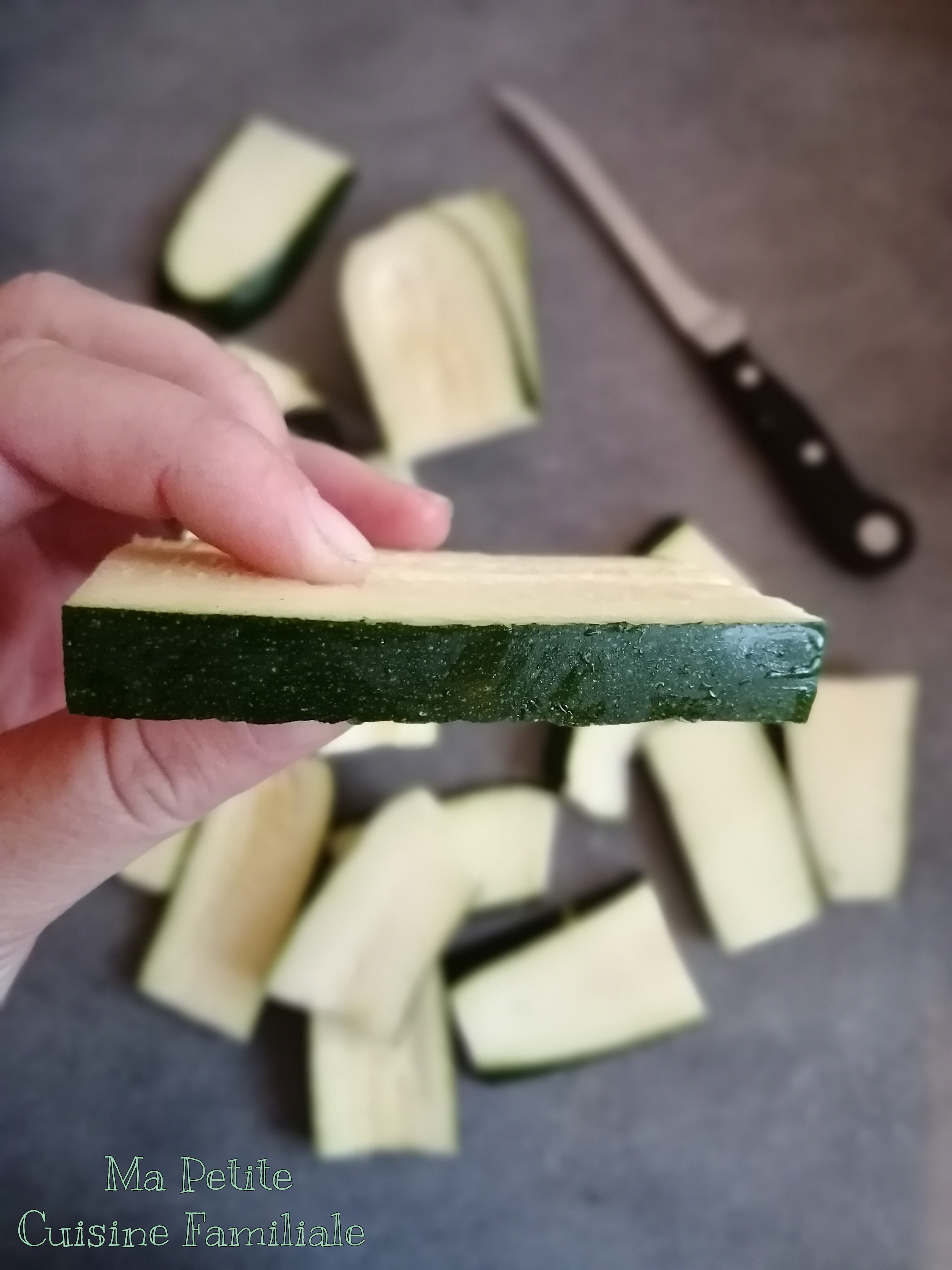Préparez d’abord les courgettes. Pour cela, coupez les bouts, l’avez les courgettes. Coupez-les en 3 dans le sens vertical, ou en 2 si les courgettes ne sont pas trop longues. L’idéal est que les cordons bleus soient longs de 10 cms environ.