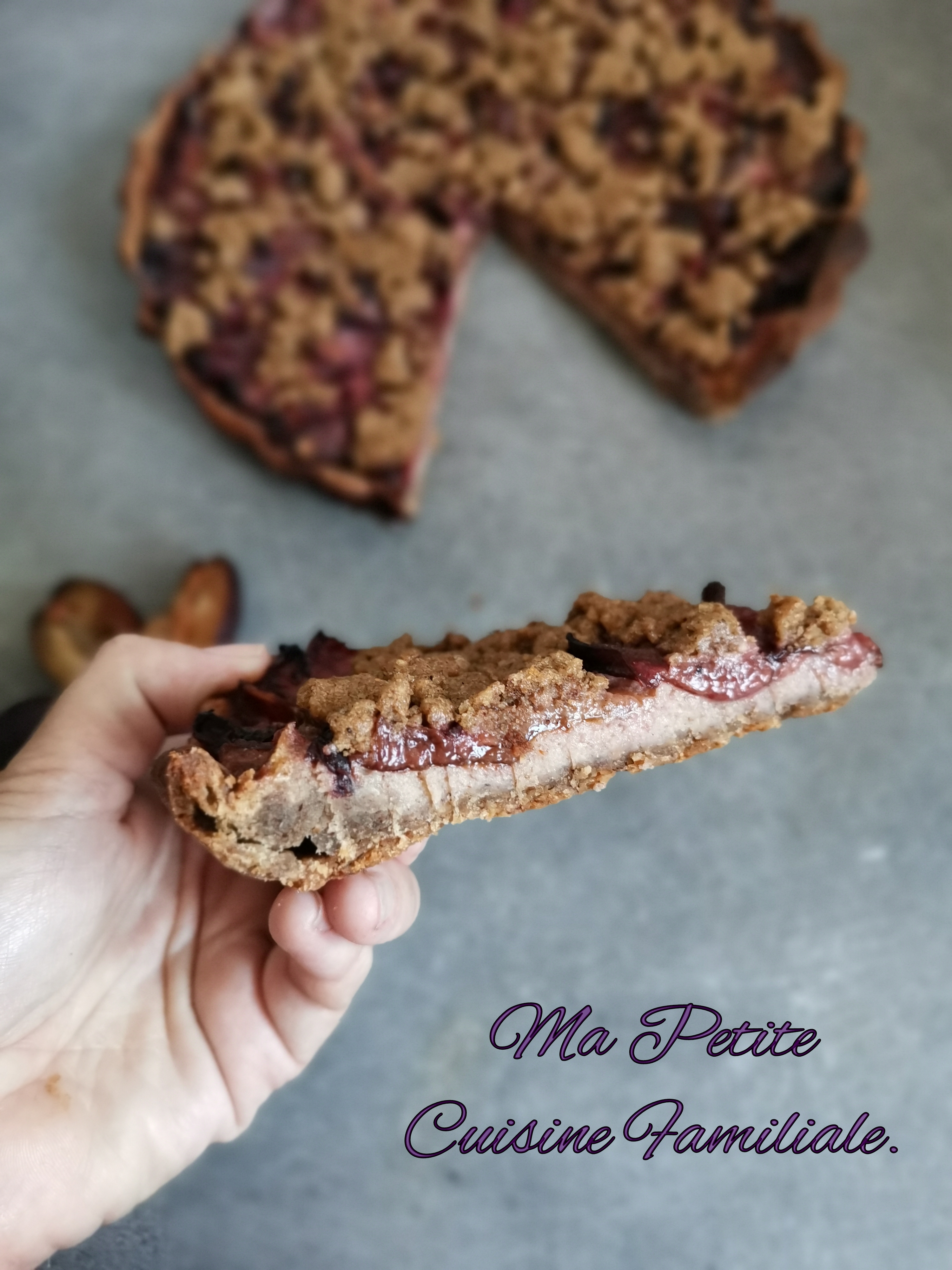Une tarte très simple à réaliser. Une pâte maison à la noisette, une petite crème d’amande sous les quetsches. Un mélange de sucre et cannelle qui permettra aux fruits de compoter et enfin un streusel de noisette, ou pas. Le streusel est facultatif.