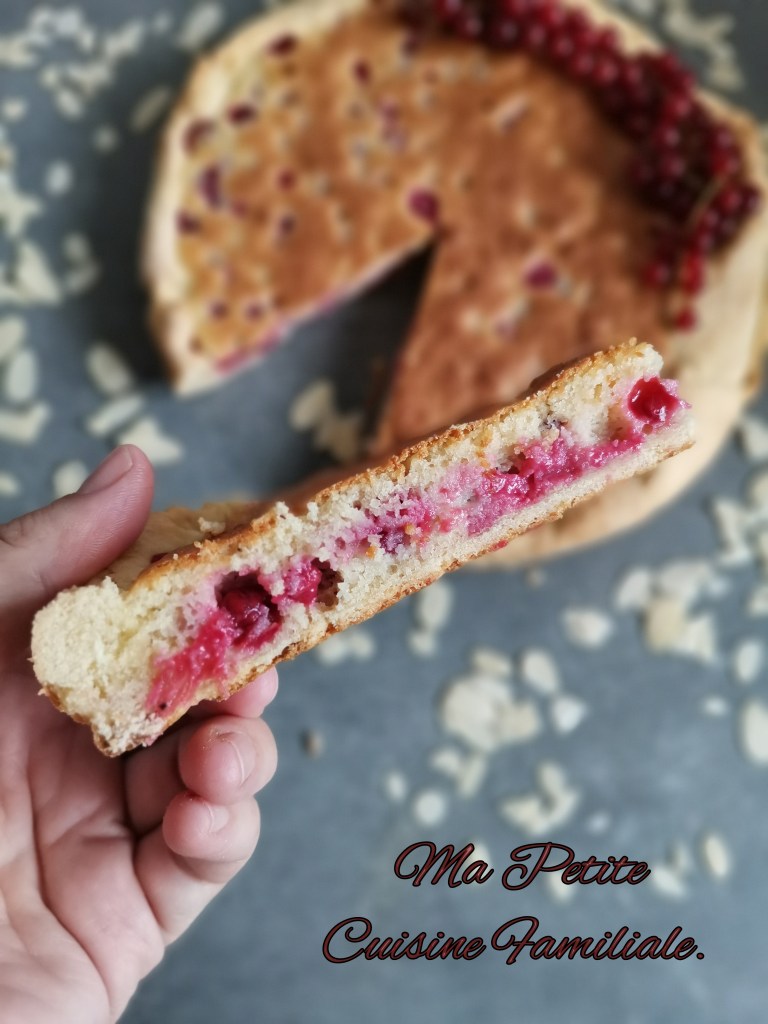 Cette tarte se compose de groseilles, d’une pâte brisée et d’un appareil à la poudre d’amande de style frangipane. C’est une recette bien alsacienne, donc oui, un peu calorique.