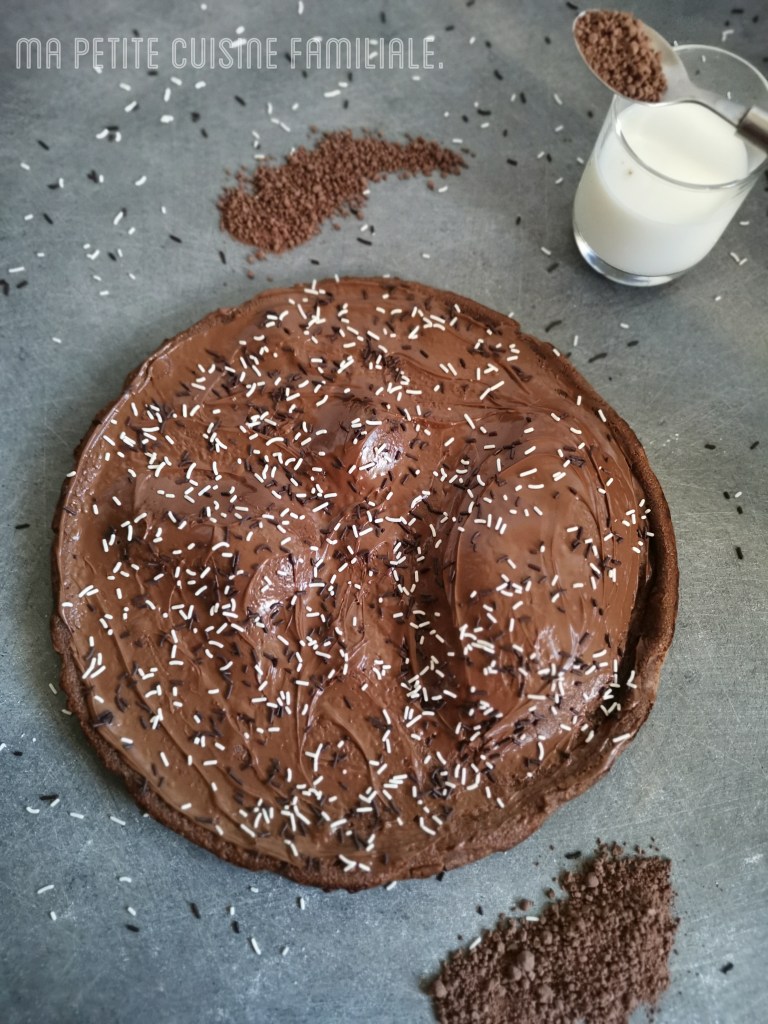 Pour y ajouter encore plus de calories, j’ai recouvert cette fine crêpe de pâte à tartiner au chocolat et de vermicelles pour la déco. Tout pour attirer l’œil des petits gourmands.