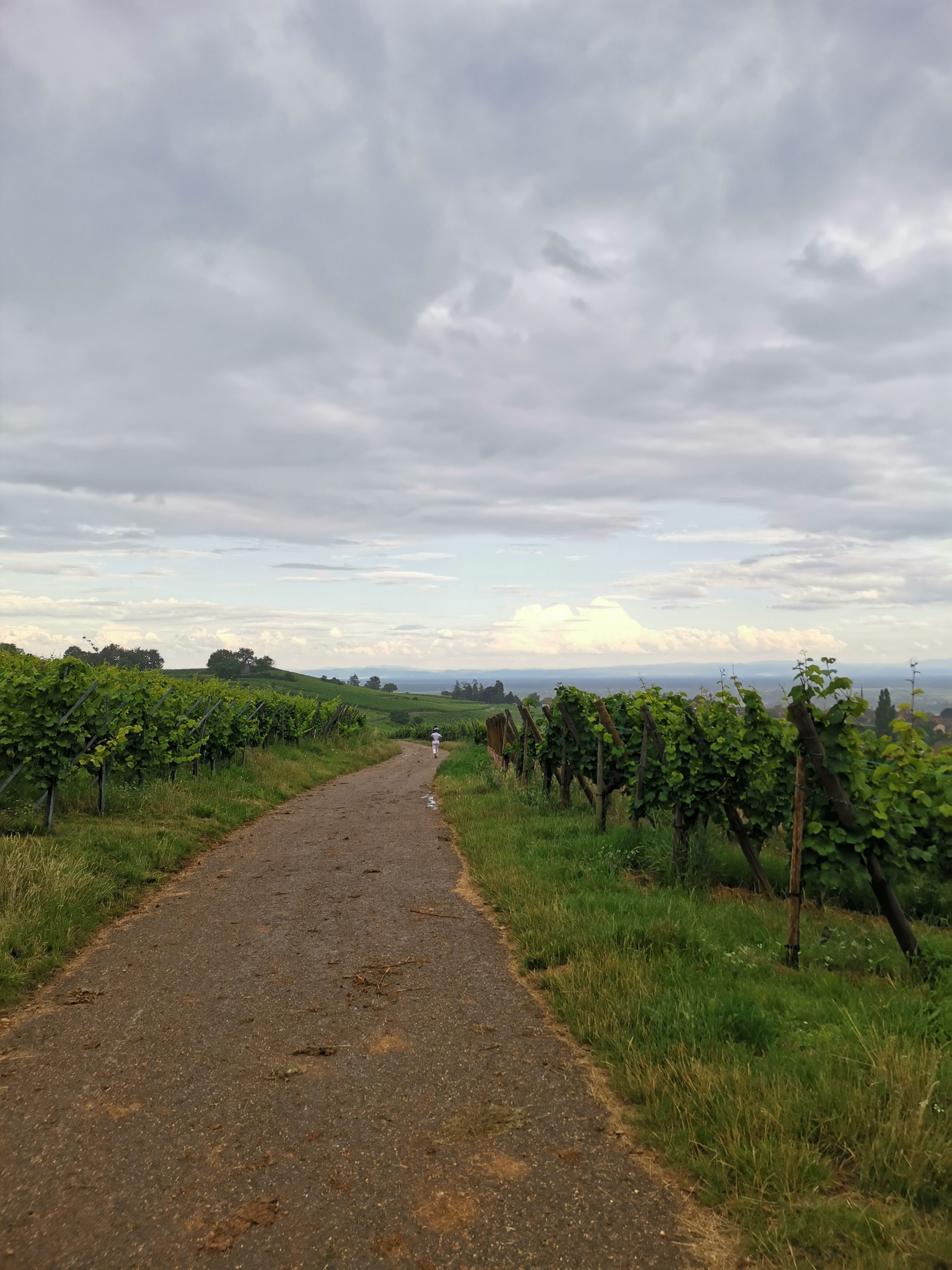 J’aime me balader dans les vignobles alsaciens, toujours à flanc de montagne, un timide rayon de soleil effleurant mon visage, un ciel un peu voilé, juste ce qu’il faut pour se promener agréablement.