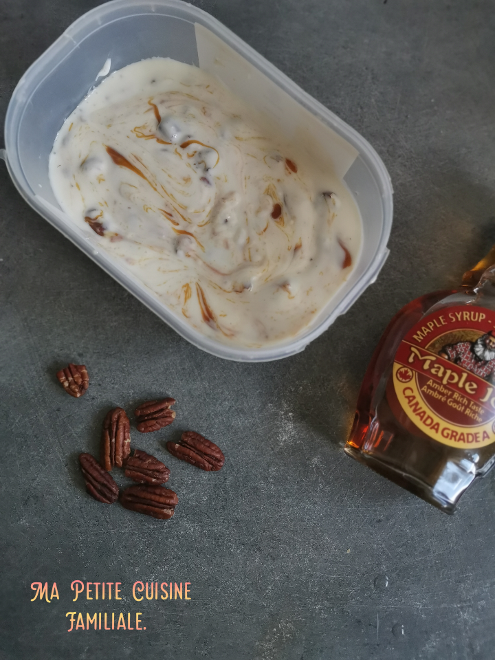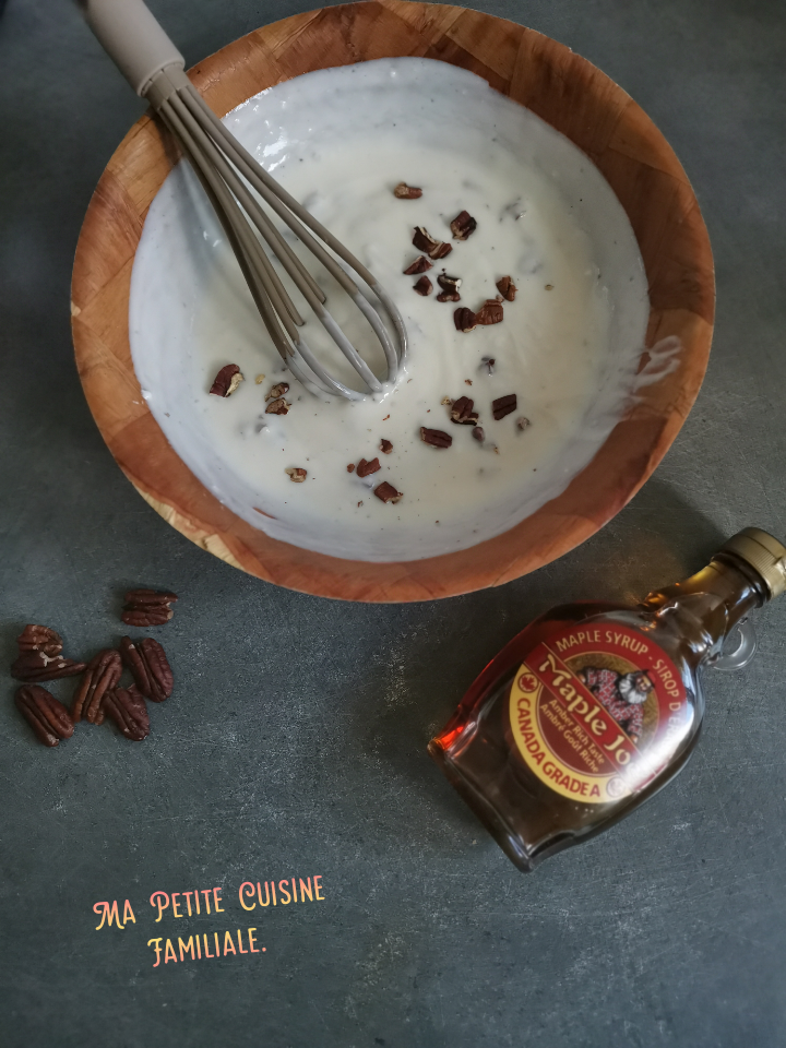 Je n’ai pas ajouté de sucre dans cette recette car sirop d’érable + caramel, c’est déjà assez bien.