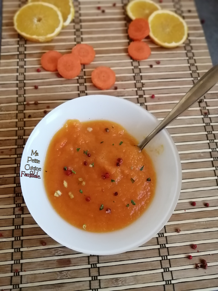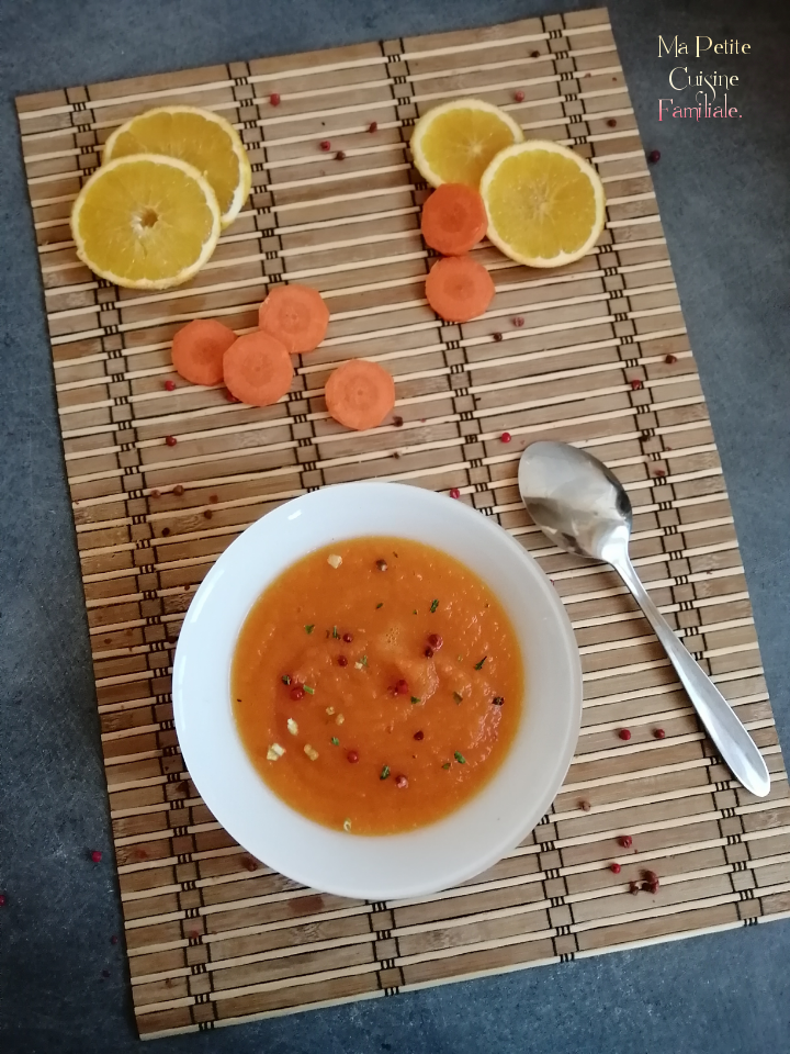 C’est une soupe toute orange que je vous propose. Une soupe automnale. Une soupe toute douce, une soupe qui réchauffe. Peut être va t-elle vous intriguer par le soupçon d’orange et de cumin ? Je vous rassure, l’orange se marie très bien avec les carottes, l’ acidité rencontre le sucré et le cumin apporte une petite touche épicée non négligeable.