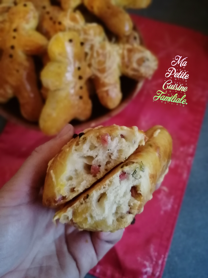 Je confectionne des maneles briochés depuis que j’ai des enfants. Ça fait donc près de 15 ans et cette année, pour apporter un peu de nouveauté, j’ai voulu innover. Des maneles salés et je me demande… Mais pourquoi aucune boulangerie n’a t-elle eut cette idée auparavant? Des maneles salés, juste au fromage, fromage/oignons/lardons, lardons/noix/oignons.