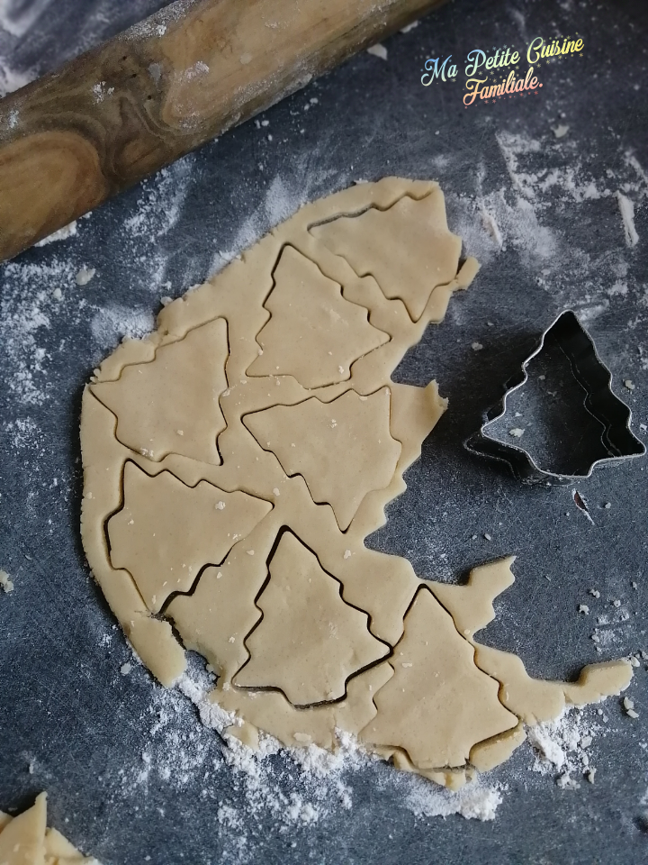 On peut les découper de formes différentes, sapins, cloches, étoiles, bonhommes de neige, lunes, etc… Les miens sont des sapins.