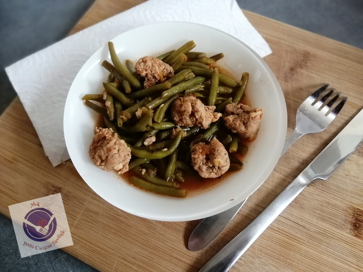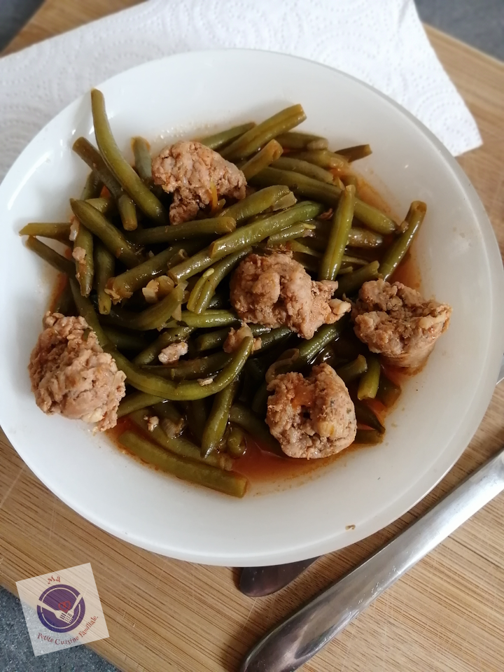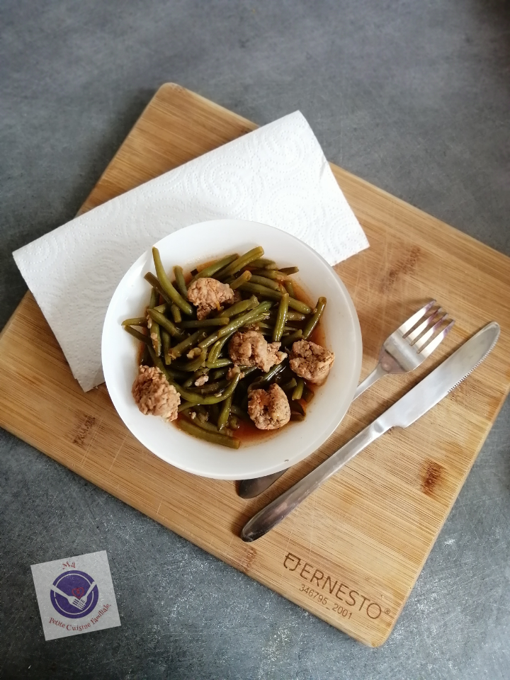 Il se compose de saucisses de Toulouse et de haricots verts. Alors, l’affirmation qui dit que « les enfants ne mangent pas de haricots verts », est un mythe. Mes enfants aiment beaucoup ces longs légumes verts, surtout cuits de cette manière.