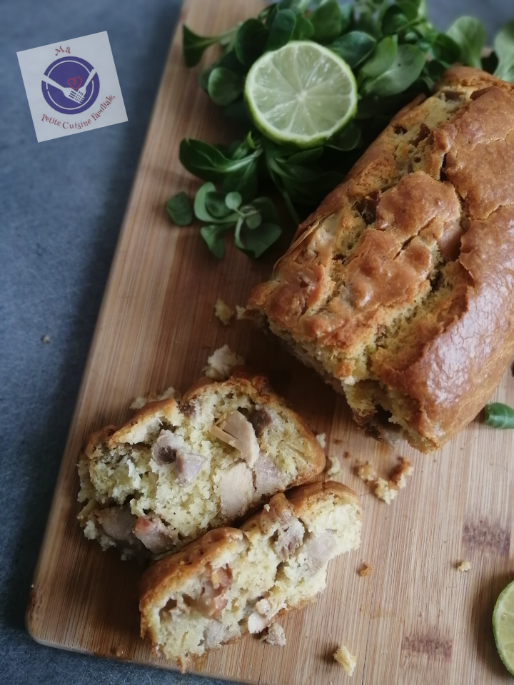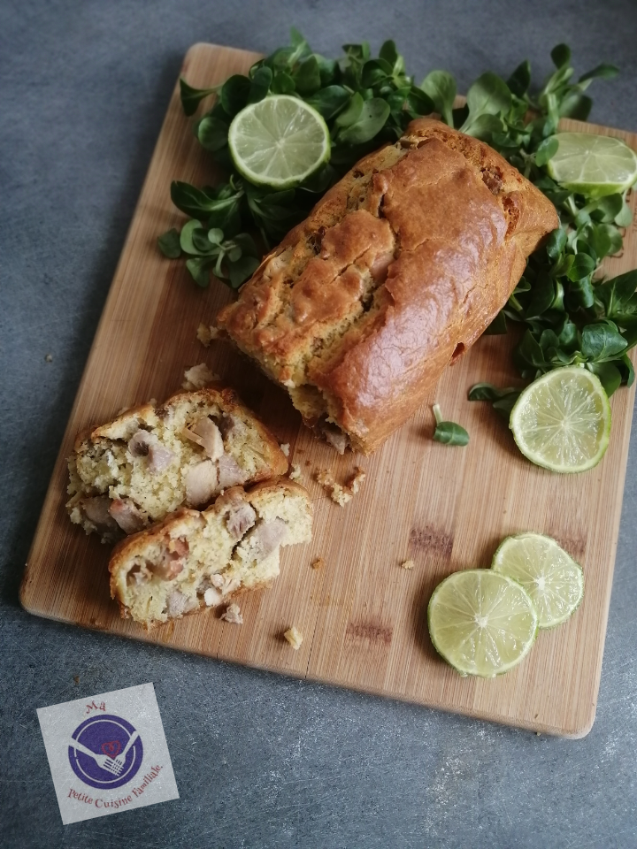 Je n’ai pas réfléchi longtemps. J’ai pensé à un poulet/coco mais 20cl ne suffisait pas pour sustanter les 6 personnes qui composent mon foyer. Les enfants m’avaient demandé des cakes salés pour le repas du soir. Banco ! J’ai fais marcher mon inspiration culinaire du moment et avec un reste de poulet qui traînait au frigo en attendant d’être mangé, j’ai créé ce cake poulet/coco/citron.