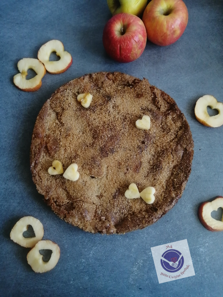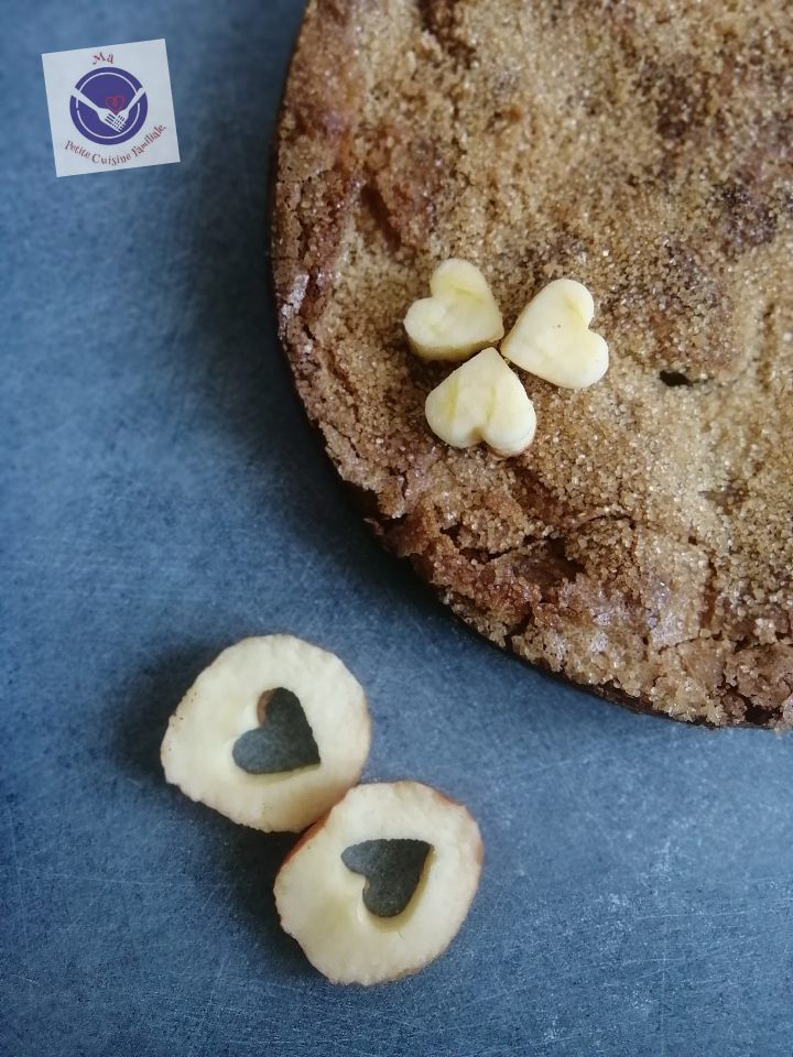 En ce jour où l’automne, saison de la pomme, est revenu, avec un vent à plus de 100km/h et des giboulées de Mars bien soutenues, je dégaine une recette gourmande, craquante et fondante à la fois. Un gâteau au yaourt et aux pommes plus que croustillant.