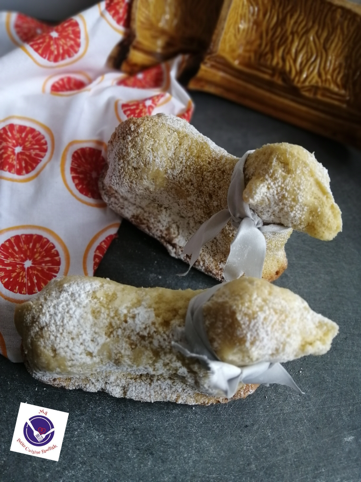 En Alsace, rien à voir avec le sacrifice par contre la forme de ce célèbre biscuit vient probablement et même très certainement de ces deux histoires. Cependant, je peux vous dire pourquoi ce gâteau est une génoise bien aérée. Après le carême, entre mardi-gras et pâques, la population qui mangeait maigrement à cette période, avait énormément d’œufs à écouler. Ils ont alors commencé à préparer ces agneaux pour célébrer Pâques.