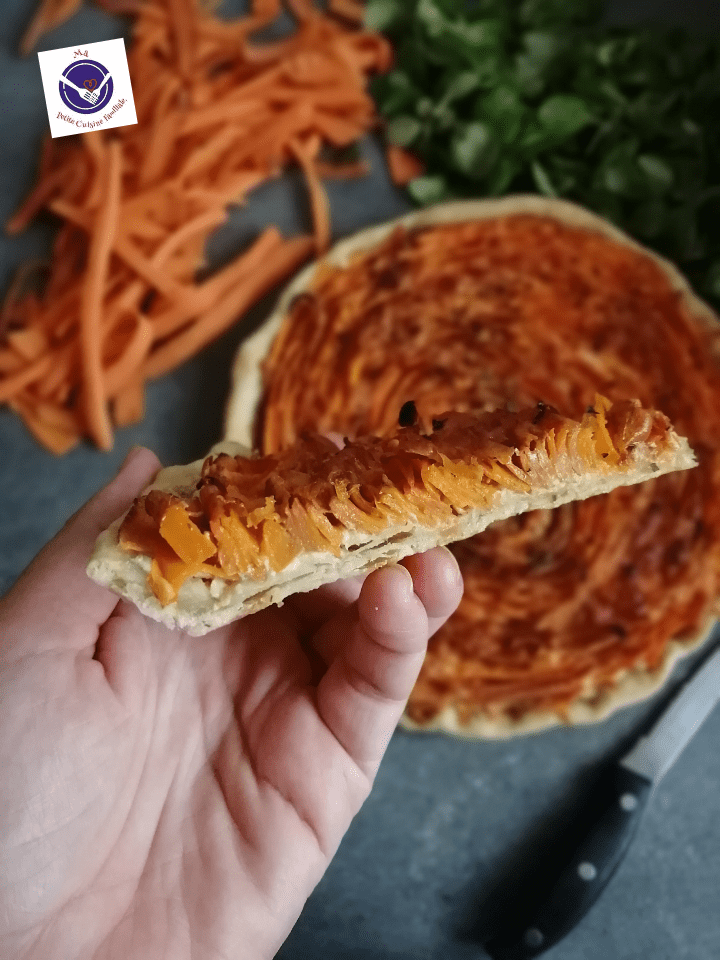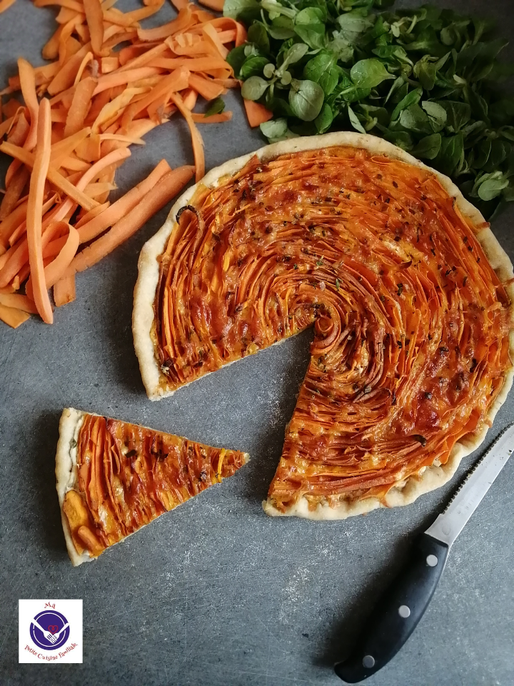 Pour les convaincre de manger une part de cette tarte, pas de problème, ils aiment les carottes et le cheddar, ça nous a fait un bon petit dîner à partager en famille.