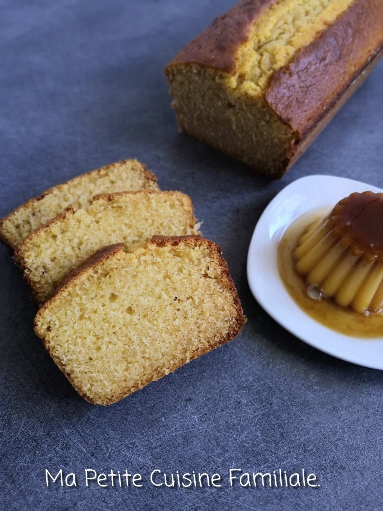 Un cake idéal pour fair passer des Flamby. Moelleux, au bon goût de caramel, étonnant.