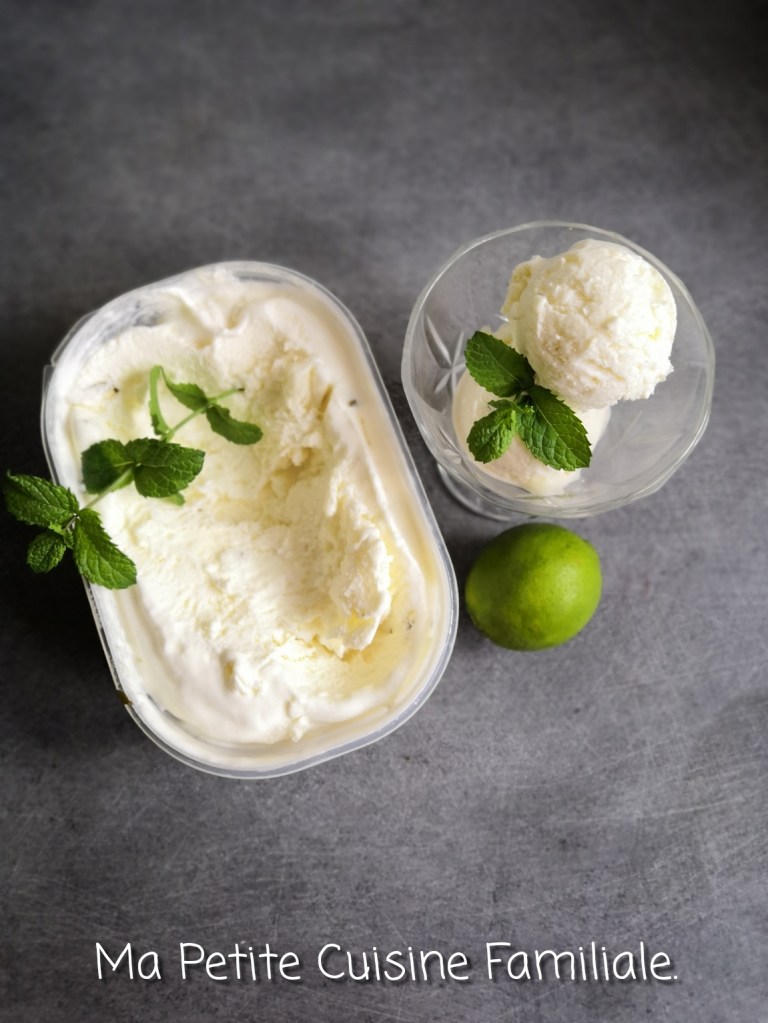 Je n’en suis même pas à la moitié du classement et voilà une 3e recette de glace. C’est dire combien vous affectionnez ce genre de dessert frais qui termine légèrement un repas. Cette glace est au saveur mojito, citron/menthe, manque juste l’alcool.