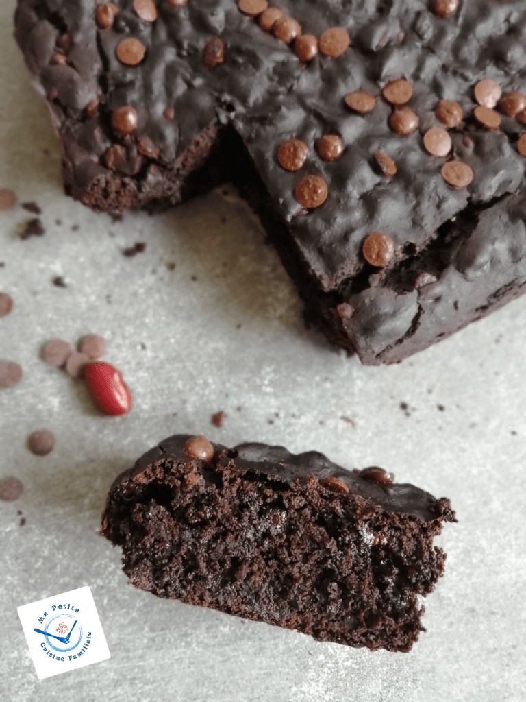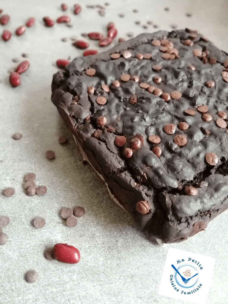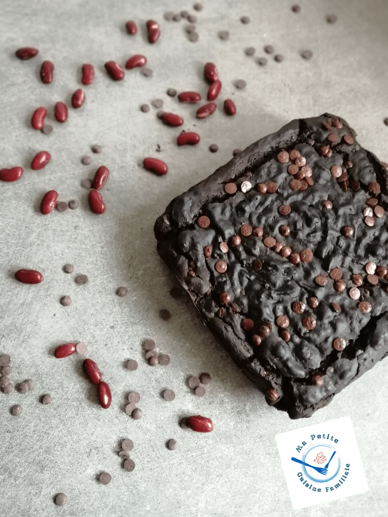 Ce brownie au chocolat, contient comme ingrédients mystère des haricots rouges. Il est fort en chocolat, comme la plupart des brownies. On ne sent pas forcément les haricots même si au goût, on remarque quelque-chose de différent dans cette pâtisserie. Il est beaucoup moins gras et sucré que les autres brownies que je vous ai déjà proposé par ici.