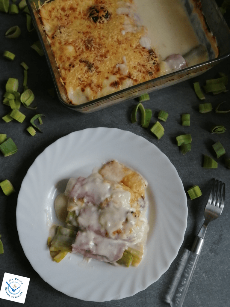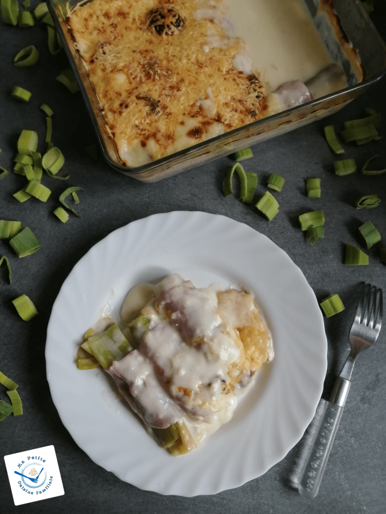 Alors pour amadouer les enfants, j’ajoute au poireau de la béchamel, du jambon et du gruyère râpé. De quoi faire remonter ce légume dans leur estime.