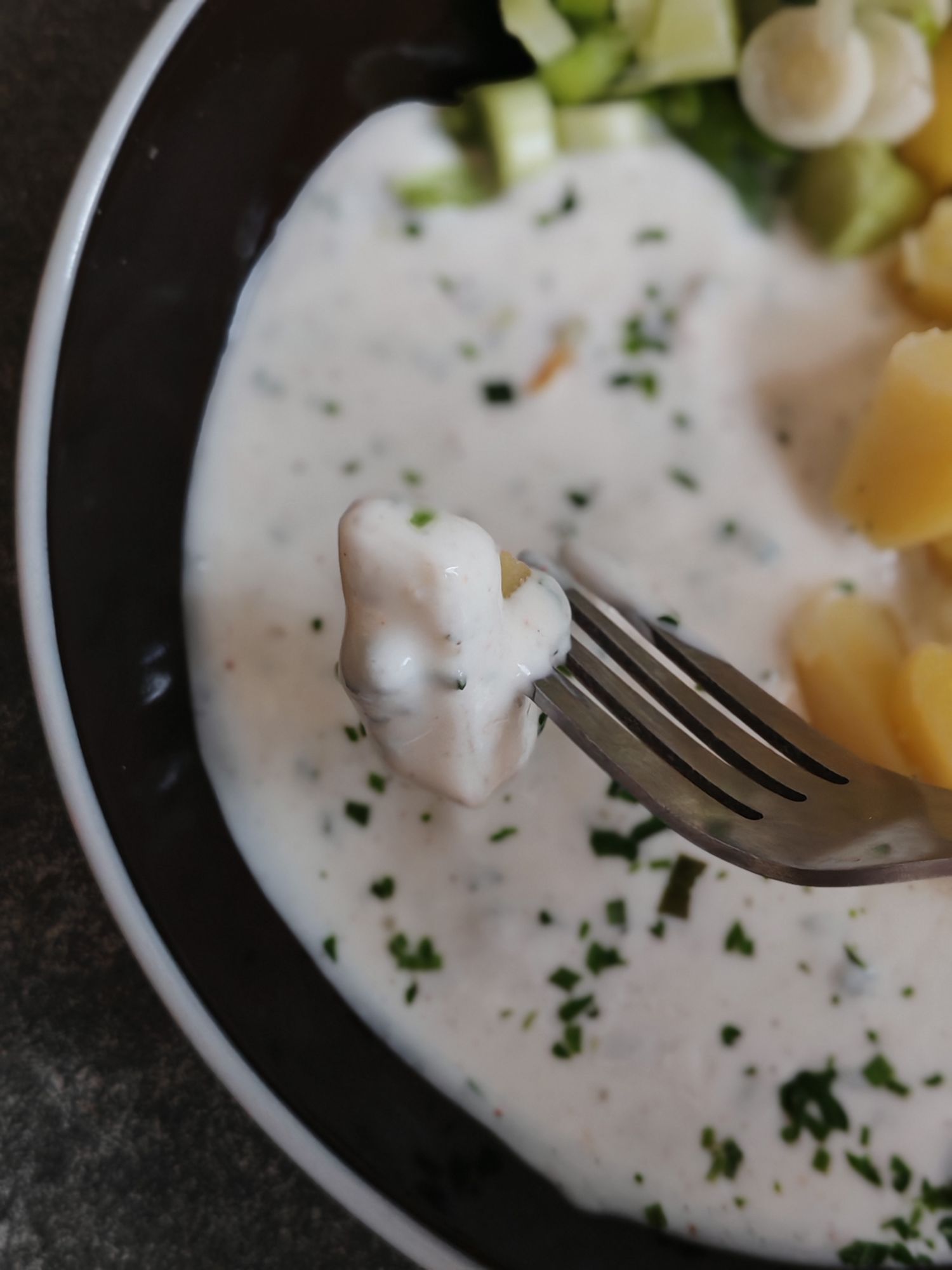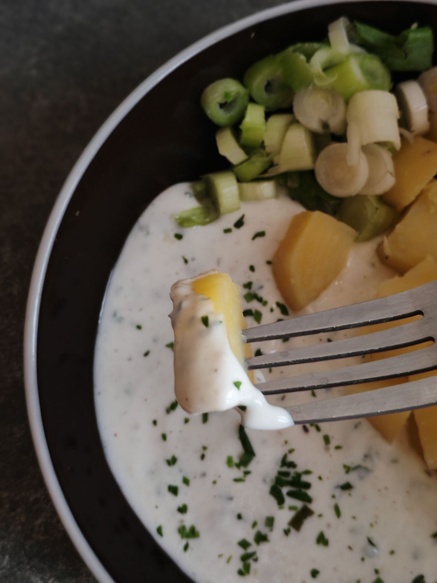 Il faut tremper les pommes de terre dans le fromage blanc pour un résultat encore plus MIAM.