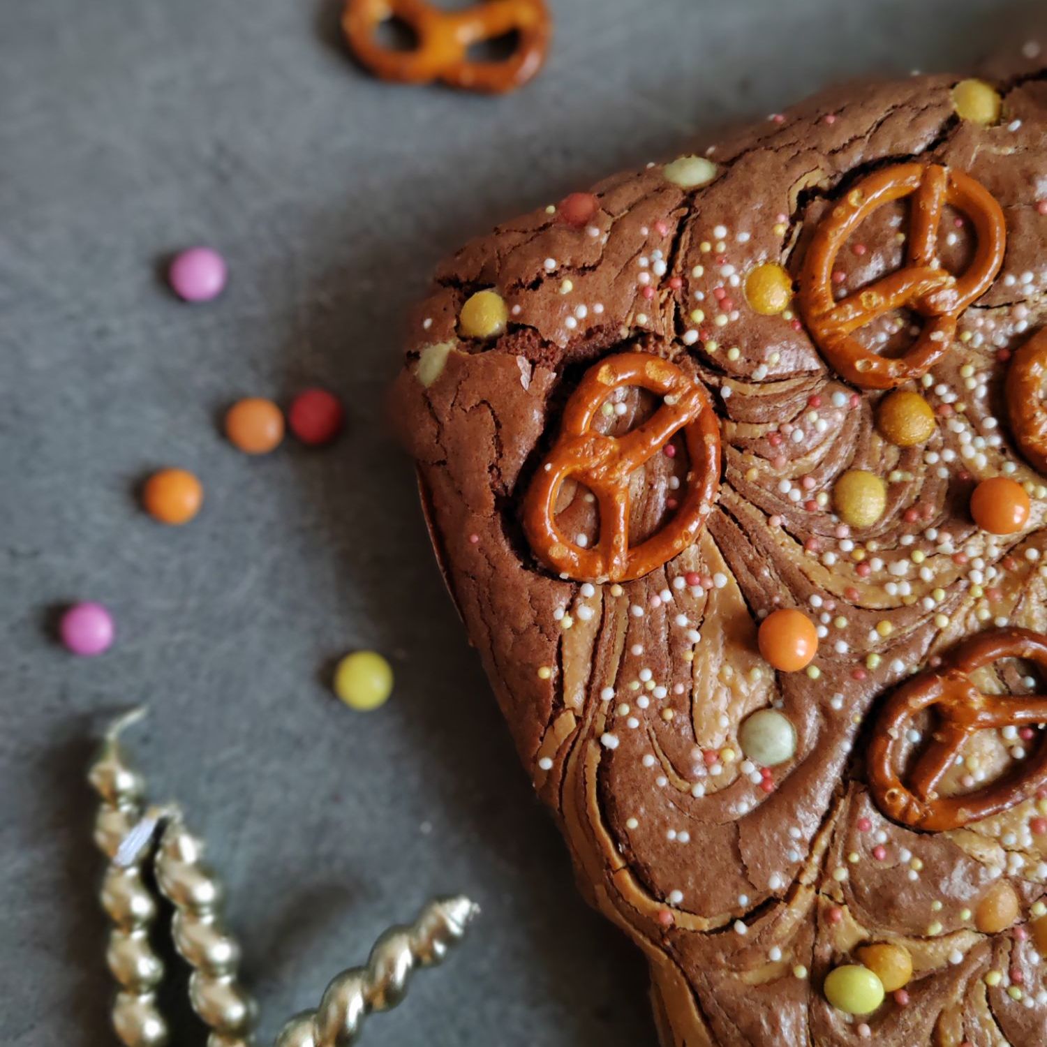 Cette recette, le l’ai faite pour mon fils de 9 ans. Ce brownie rassemble tous les ingrédients préférés de ce petit gourmand. C’est à dire, le chocolat, le beurre de cacahuètes et les bretzels apéro. Le tout associé, donne un résultat à tomber.